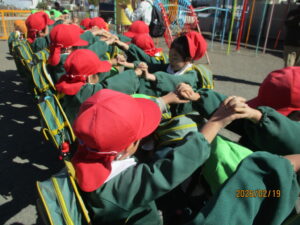 仲良しのお兄さんお姉さんと手をつないで散歩する年少さんは、みんな幸せそうな表情で歩いていましたよ。