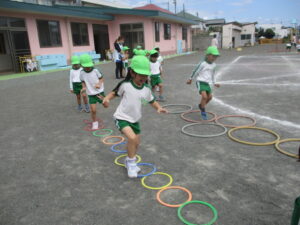 内側には大きな円のケンケンパ、外側には小さい円のケンケンケンケンケン…を用意していますのでそのどちらかを選んで進んでください。