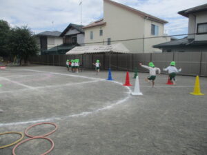 毎年、運動会の最終種目である年長児リレーの直前に行われるのが、この保護者競技です。