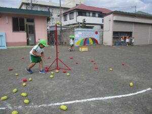 颯爽と走ってきて玉を手に取り、一発でカゴに入れられたら拍手喝采!!
