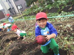 農家から一株何円で買い取って掘るわけではなく、ここまで自分たちで育てたサツマイモで行う芋掘りですから、みんないい表情で行っていましたよ。