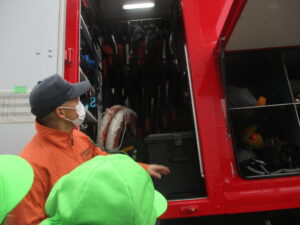 防火服を着て写真を撮ったり、車両や署内の見学もさせてもらいました。