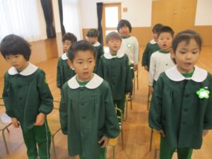 まずはホールで久しぶりに卒園式の練習を。