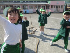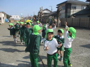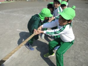 これを幼稚園生活最後の参観日に親子で楽しもうというのはなかなか面白い企画だなぁ~という事で、今日はまつ組さんに綱引き体験をしてもらいました。