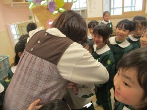 元担任が廊下を通りかかる度に手でプレゼントを隠したり、敢えての無表情で平静を装ったり。
