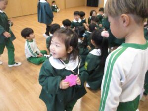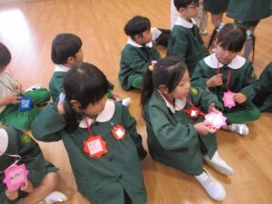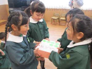 お互いプレゼント交換をして、幼稚園生活最後の交流を行いました。