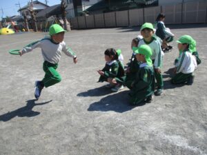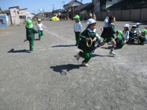 その後は今年一年使った部屋を大掃除し、幼稚園生活最後のリレー勝負も行いました。