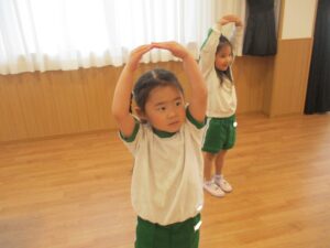 年中ばら組さんは、ホールで体を動かしました。