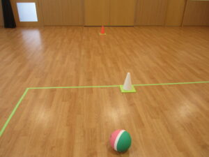 もし負けてしまった場合は、遠~くの赤いコーンを折り返して戻らなければなりません。