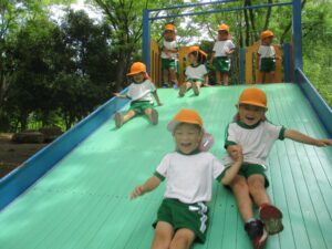 ここ数日は暑すぎて外では遊べず、これから梅雨に入るとまた外では遊べなくなるので、最高のタイミングと最高の散歩日和が重なって、楽しい園外保育となりました。