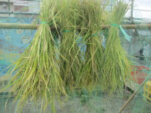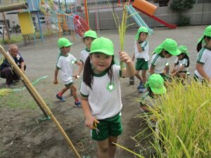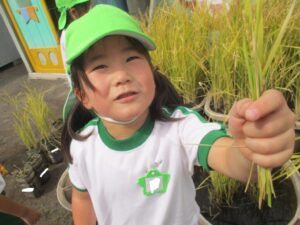 年長まつ組さんが4月30日から育ててきたお米は、そろそろ収穫の時。
