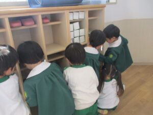 昼食後、年少たんぽぽ組さんのお部屋では大掃除が行われていました。