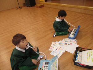 最近は歌うだけでなく、ピアニカで演奏する子も増えてきています。