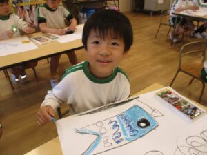 朝から園庭の様子を興味深げに眺めていたからか、こいのぼりを描く子が多かったです。