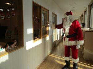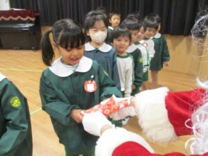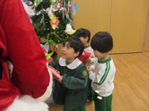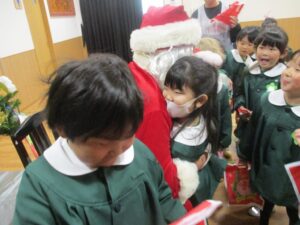 サンタさんからプレゼントをもらい、一緒に写真も撮影しました。