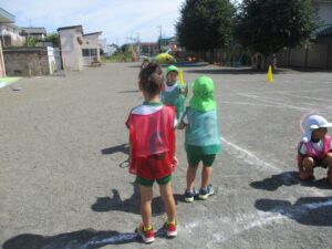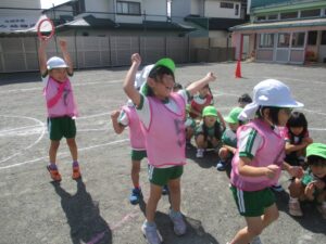 10月11日の運動会に向けての活動を楽しんでいる年少たんぽぽ組さん。